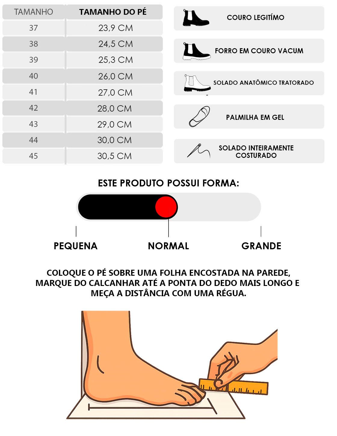 Produto de ótimo qualidade, excelente custo beneficio, couro legitimo. Apenas se atentar ao tamanho da circunferência do cano para a sua perna.